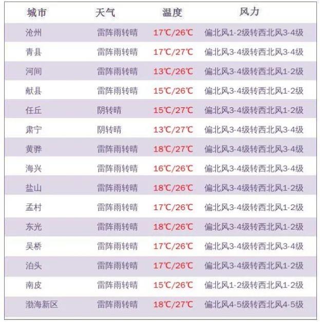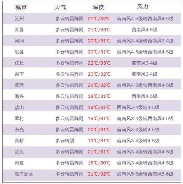 沧州各县市预报