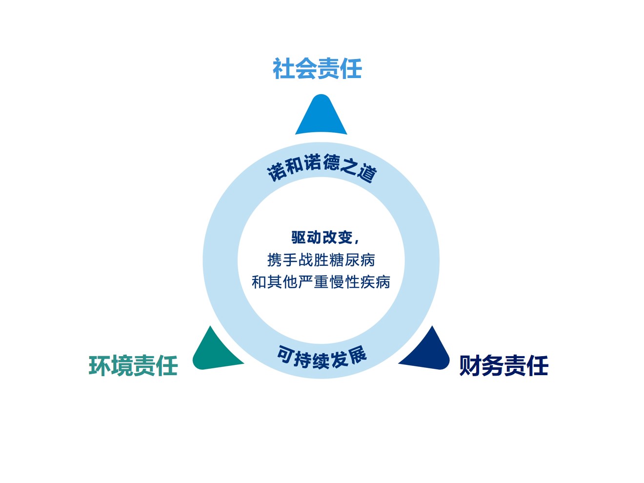 诺和诺德的专业和业务发展始终扎根于人类健康事业。我们致力于让严重慢性疾病患者能够生活得更长久、更健康。为此,我们不仅在产品研发上不断创新,更在社会责任和环境保护方面积极行动。我们深知,企业的成功离不开社会的支持和环境的保护,因此我们将积极履行社会和环境责任,从造福患者到携手应对环境挑战和社会问题,为打造更加健康和可持续的世界贡献自己的力量。