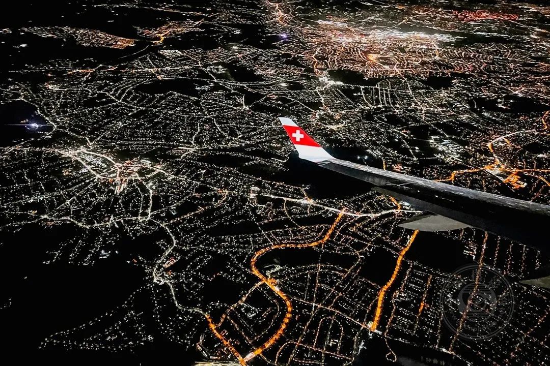 从日内瓦返航时,伦敦上空晴空万里。伦敦城的灯光形成了一道迷人的风景线。