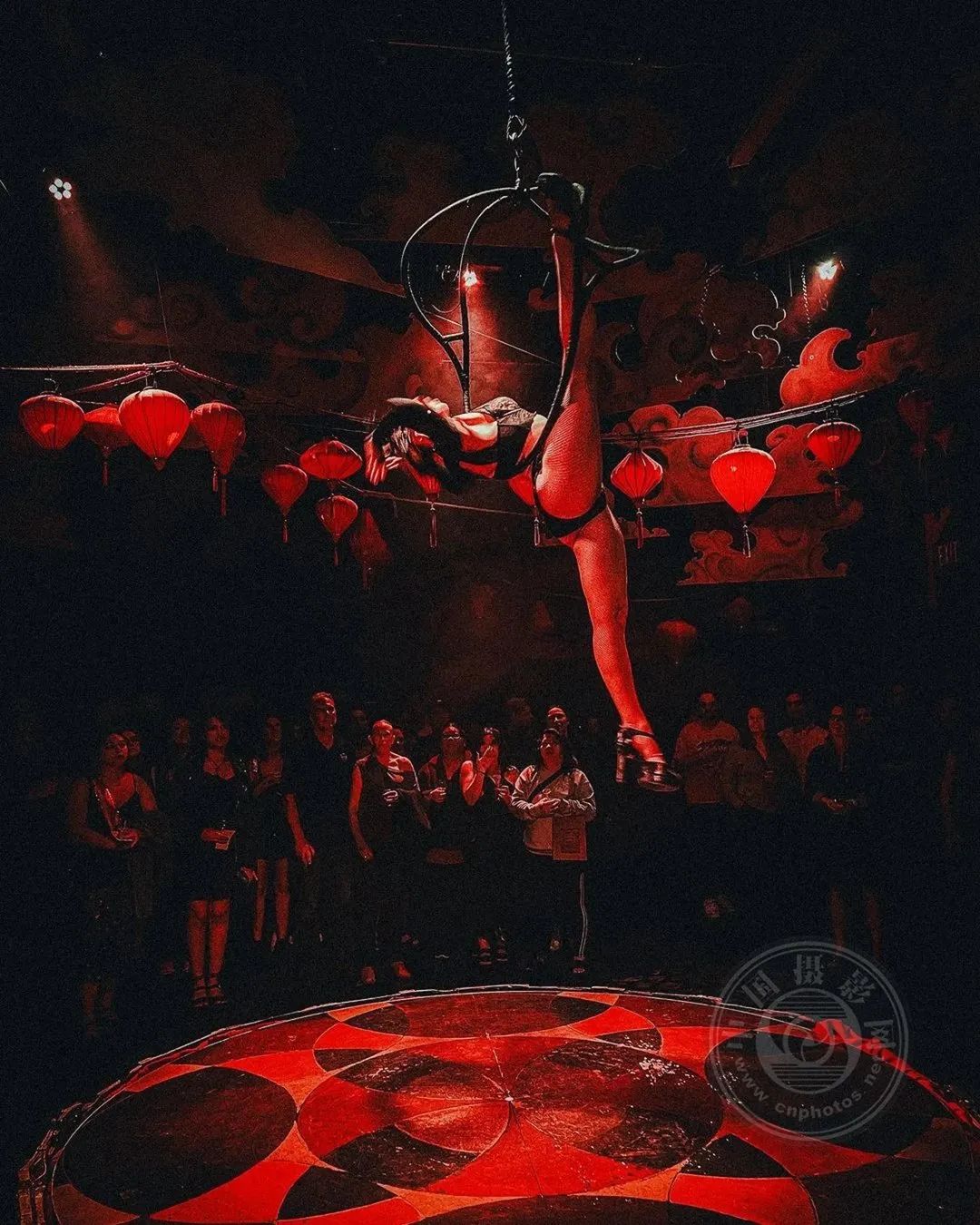 拍摄于Lost Spirits朗姆酒酿造厂,一位表演者在空中旋转。