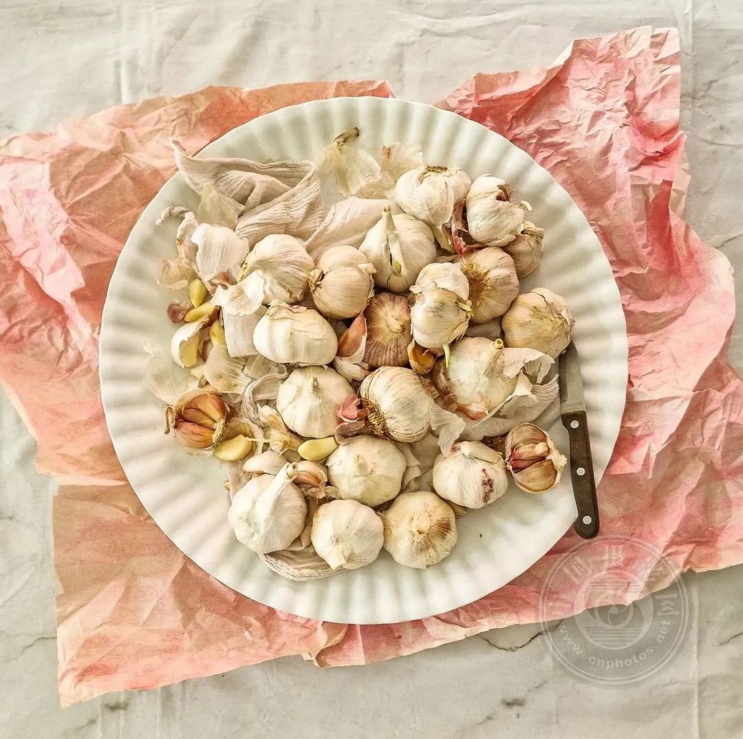 胭脂蒜摄于我的家庭工作室,我对大蒜情有独钟。我在各种烹饪中都会用到它,从烤面包到卡里叻沙。因此,我需要大量的大蒜,并进行批量准备。我想在视觉上欣赏大蒜细腻的色泽、外层的特征和粗壮的球茎形状。