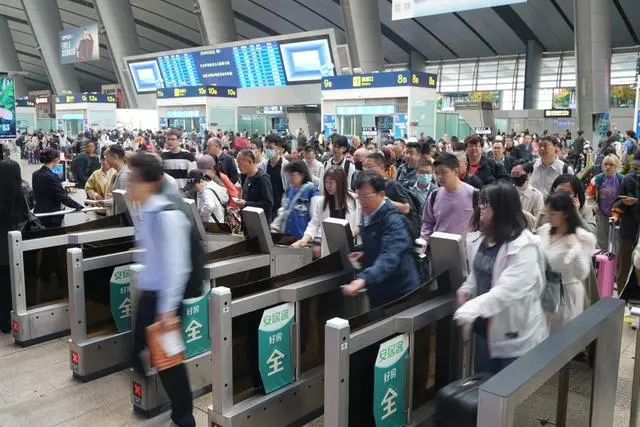 拥挤的高铁站广铁集团发布数据,5月1日至5月5日广铁共发送旅客1245.8万人次,日均249.16万人次。5月1日,广铁迎来客流最高峰,发送旅客292.9万人次。