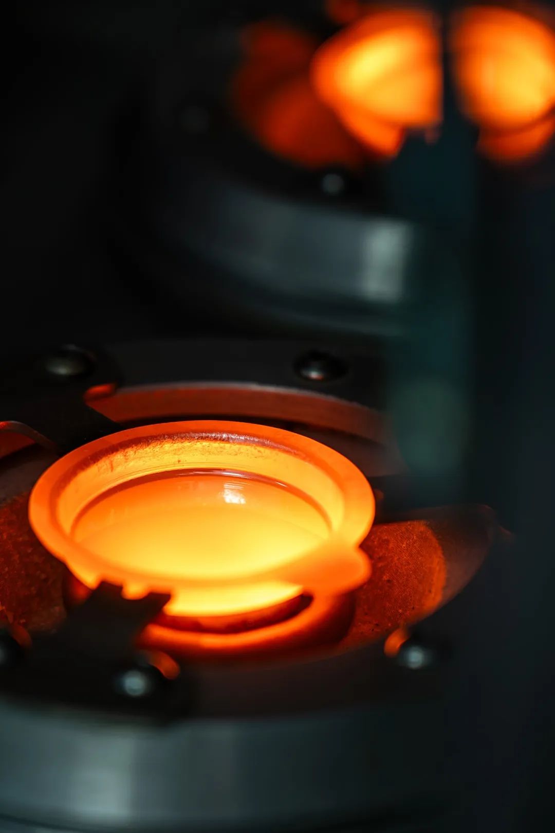 将用于精密分析的磷矿石正在铂金皿内融化。