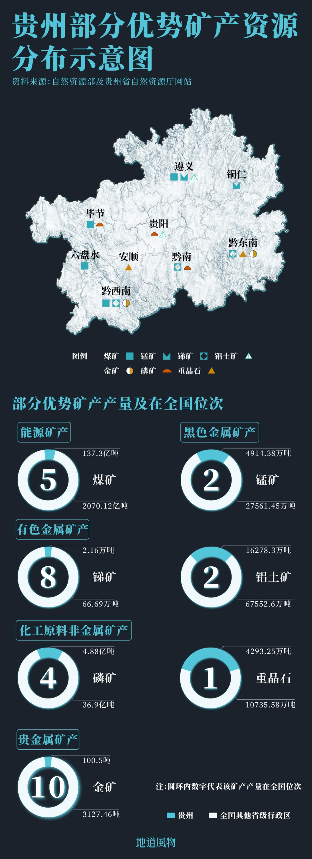 贵州省部分优势矿产资源分布示意。制图/刘耘硕