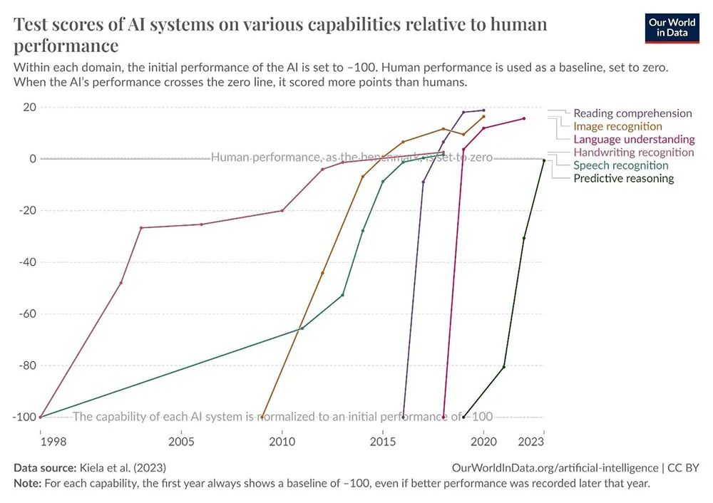 随着最新模型训练成本的极速飙升,部分模型的能力已经达到甚至在某些情况下超过人类的水平。据斯坦福大学报告估计,最新的模型训练成本已逼近2亿美元。