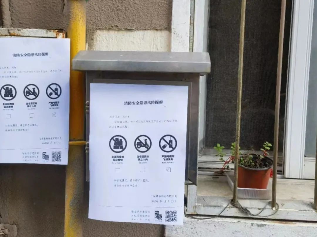 张贴消防安全隐患风险提示为排除隐患,第一微格长裴国龙先与调解主任王谷诚一起联合物业进行了首轮排查,并由物业对私自安装的充电设施张贴了消防安全隐患风险提醒,让居民自行拆除。随后,裴国龙再与社区民警一同上门进行二次排查,查看整改进度并普及用电安全知识,增强居民的安全意识和自我保护能力。