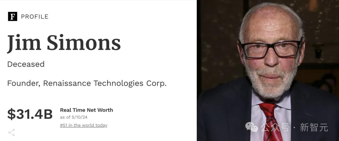 根据福布斯排行榜,Jim Simons去世时的净资产达到了314亿美元,排名世界第51位。