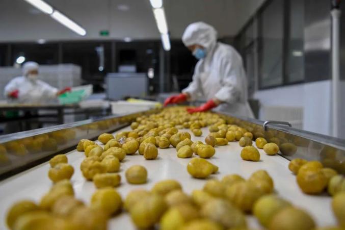 一家板栗深加工企业的工人在生产线上忙碌。刘环宇 摄近年来,宽城打造了“宽城板栗”区域公用品牌,积极扶持板栗产业龙头企业,带动农民致富。