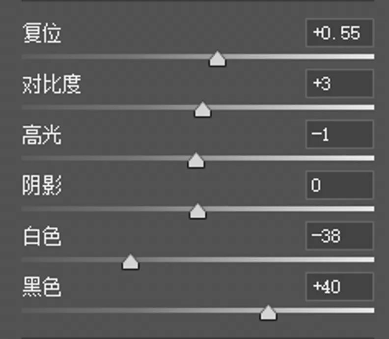 在基础调整中,因为原片昏暗,所以第一步需要大幅度拉高曝光,拍摄时保留了RAW格式,高宽容度能更加完整的保留画面的质感,然后降低白色保留人物衣服的细节。增加黑色提高画面的暗部。