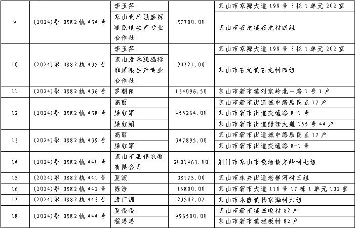原标题:《京山市人民法院关于送达执行通知书、报告财产令暨敦促被执行人履行法定义务的公告 2024年(第九期)》
