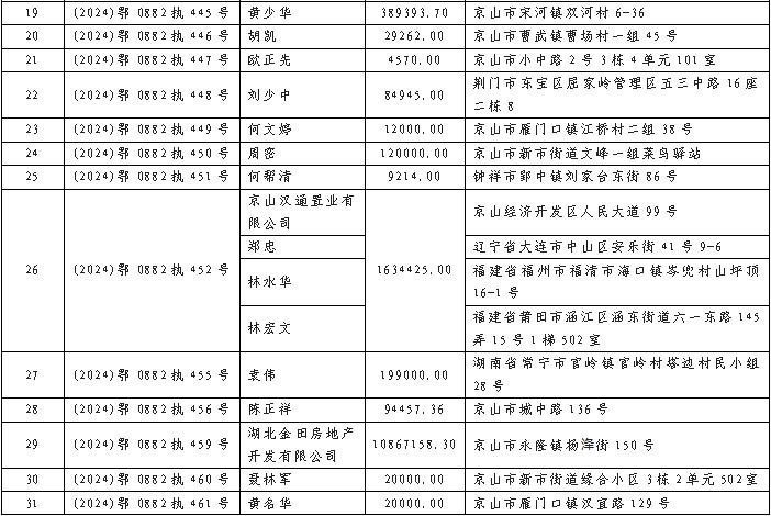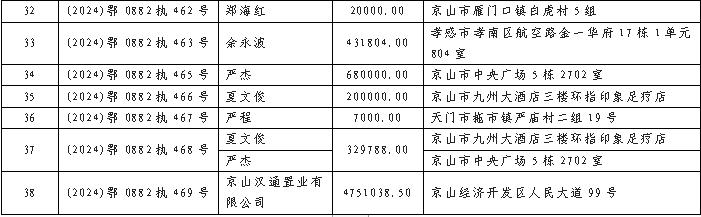京山市人民法院关于送达执行通知书、报告财产令暨敦促被执行人履行法定义务的公告 2024年(第九期)