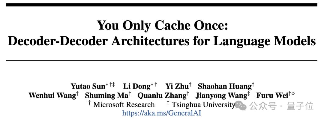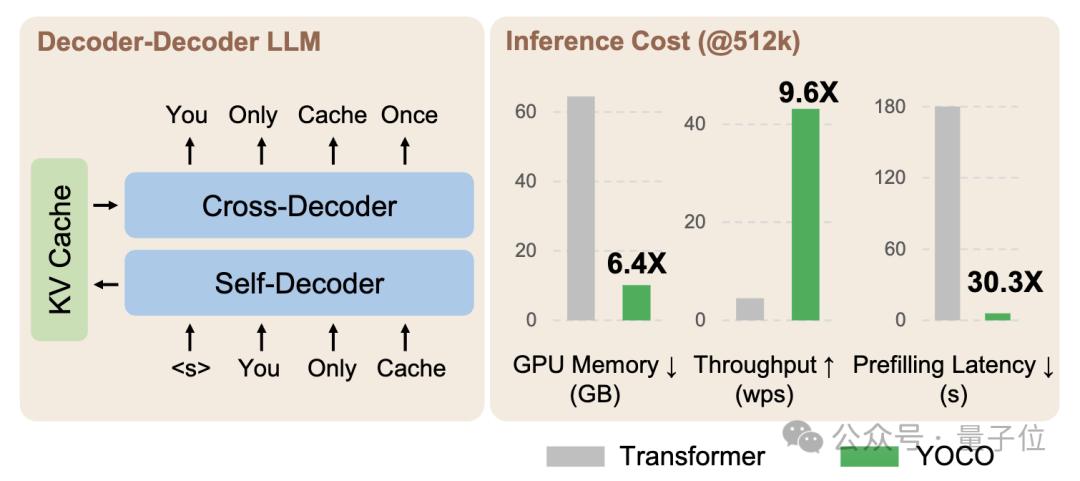提出Decoder-Decoder新型架构,名为YOCO(You Only Cache Once)。