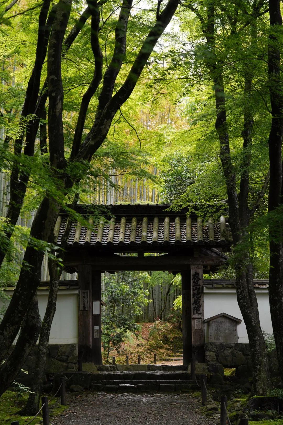 去往西芳寺的路上,会路过地藏院。走过的时候,一眼看到葱郁绿色间的山门,就已经动念等会要来看它了。进门,有一个小小的售票的木屋。一个老和尚坐在里面,安安静静,几乎没有游人。