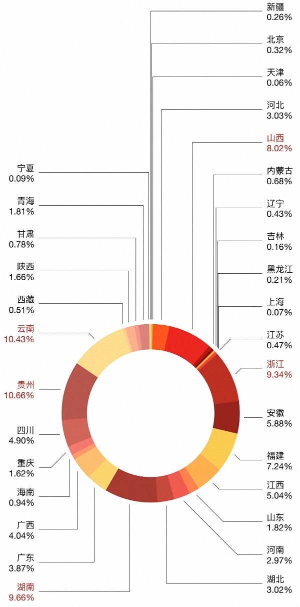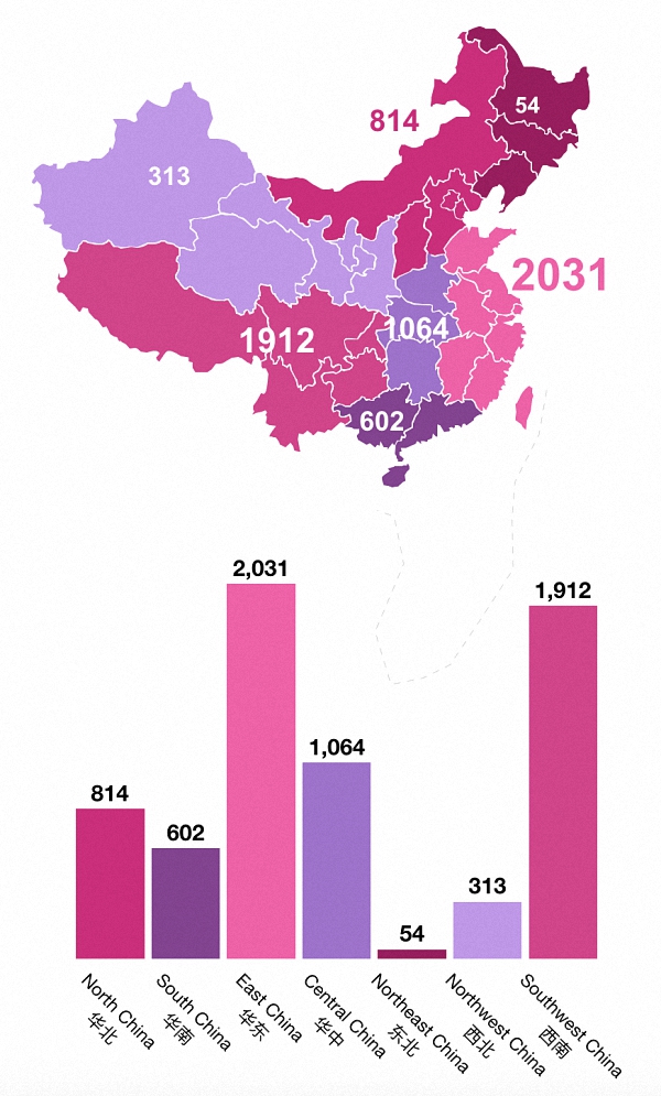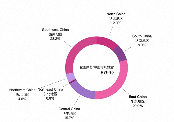 明显可见,华东地区和西南地区的“中国传统村落”数量,远超其他地区。