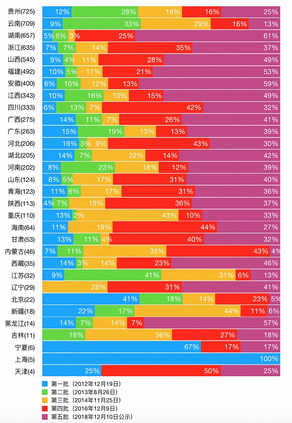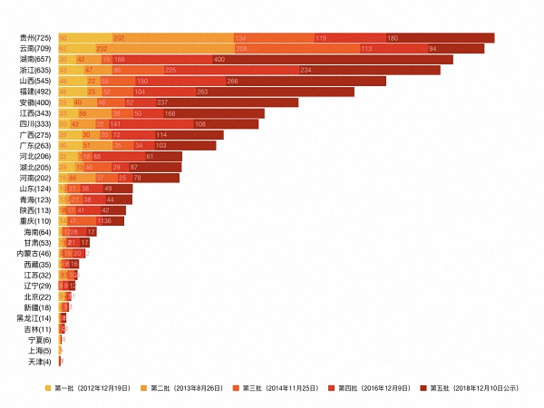 (作者为米兰理工大学的在读博士,西安建筑科技大学建筑学院讲师。本文原载于微信公众号“五號樓”,原标题为《五批“中国传统村落”分布数据图解总结》,澎湃新闻经作者授权转载,内文稍作修改。)
