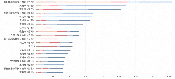 各市(直辖县、州)拥有中国传统村落数量排名TOP 20