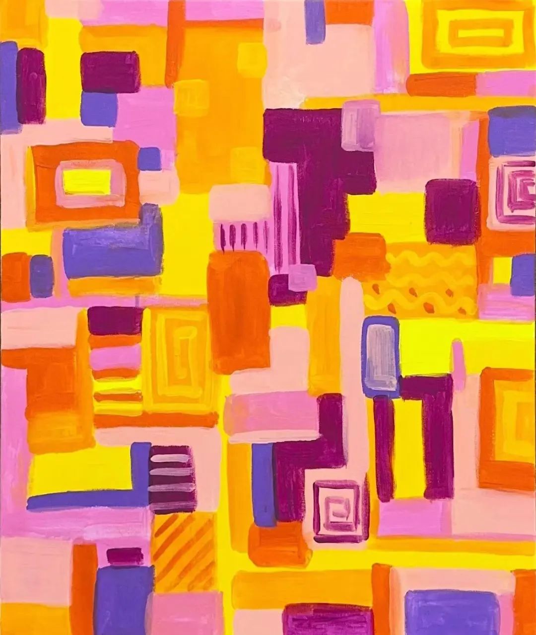 清晨的阳光洒在花园的草地上,露珠在嫩叶上闪烁,手握不同大小尺寸的画笔,轻盈地在画布上游走。随着画笔在不同方向延伸,花园的色彩逐渐显现。线条和几何形状拼接出一幅层次分明的画面,选取冷色调或暖色调的同类色,为花朵和草木赋予生机,营造出春夏秋冬各具特色的花园景象。