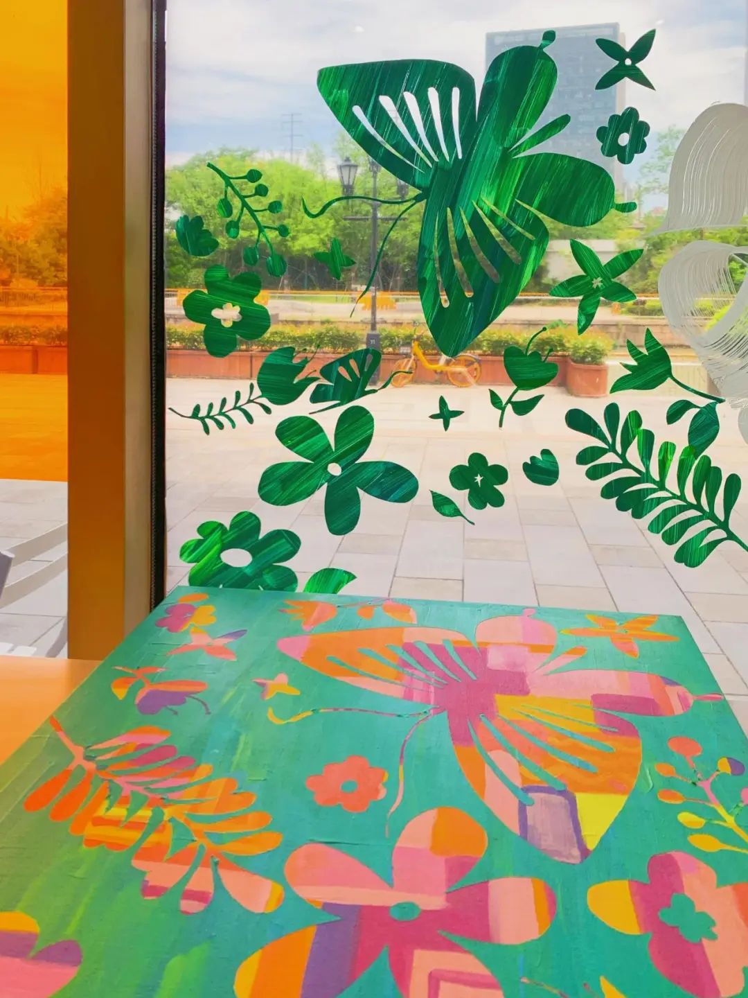 最后,将撕下的转移膜贴在透明的PVC玻璃片上,完成第二幅艺术作品。