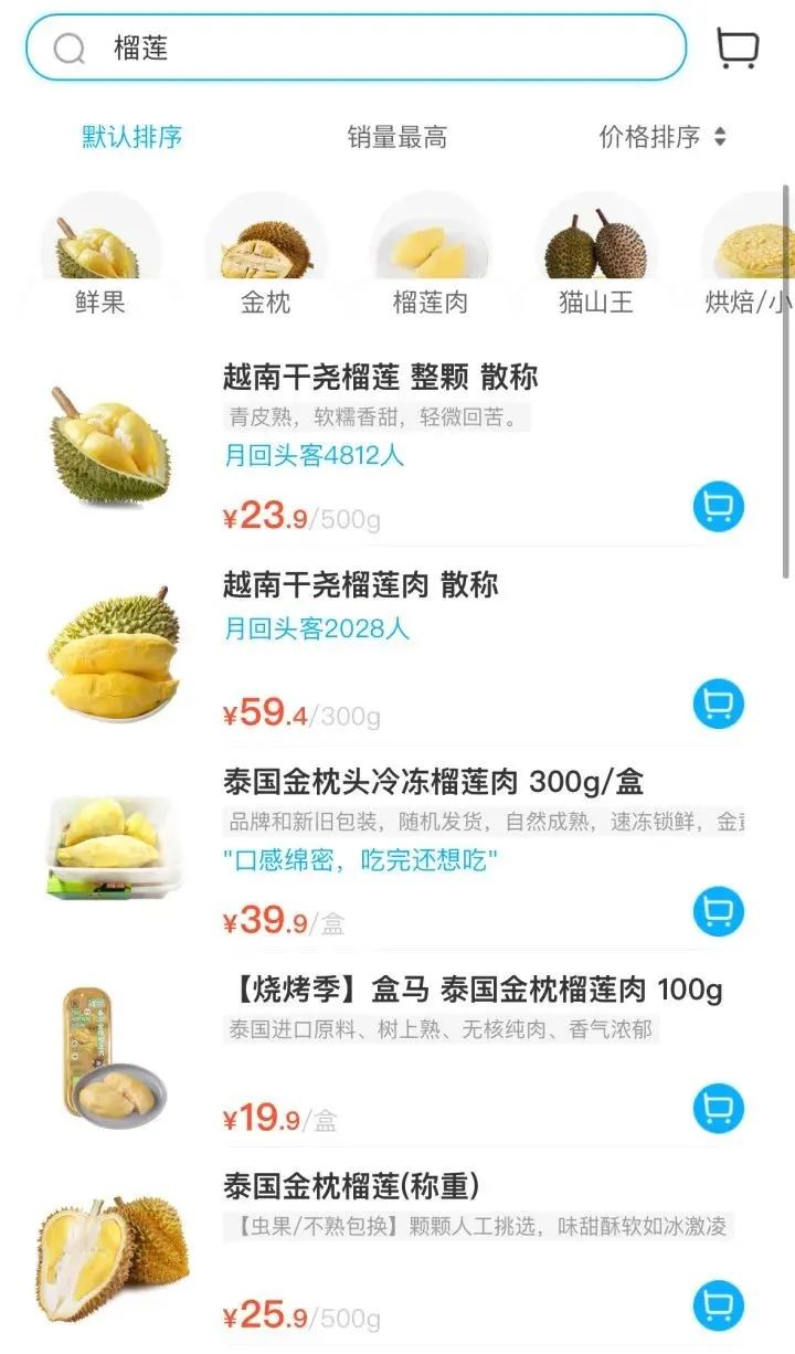每斤榴莲的零售价格在28元左右整箱批发则低至21~23元