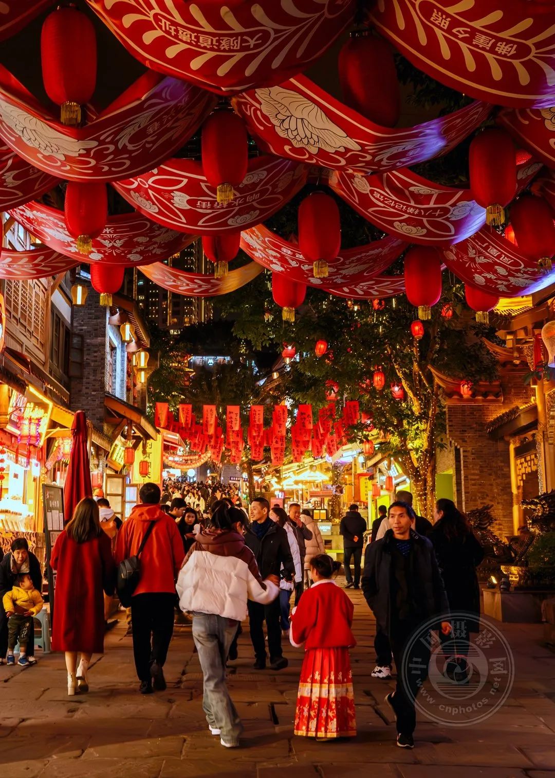 ▲ 《游十八梯品山城年味》(组照)©陈兵(重庆)2024年2月2日腊月廿三,重庆市渝中区十八梯景区早已充满节日气氛,年味十足。景区布置与往年相比虽然较为简约,但及具地方文化特色。景区游客涌动,人流如织。