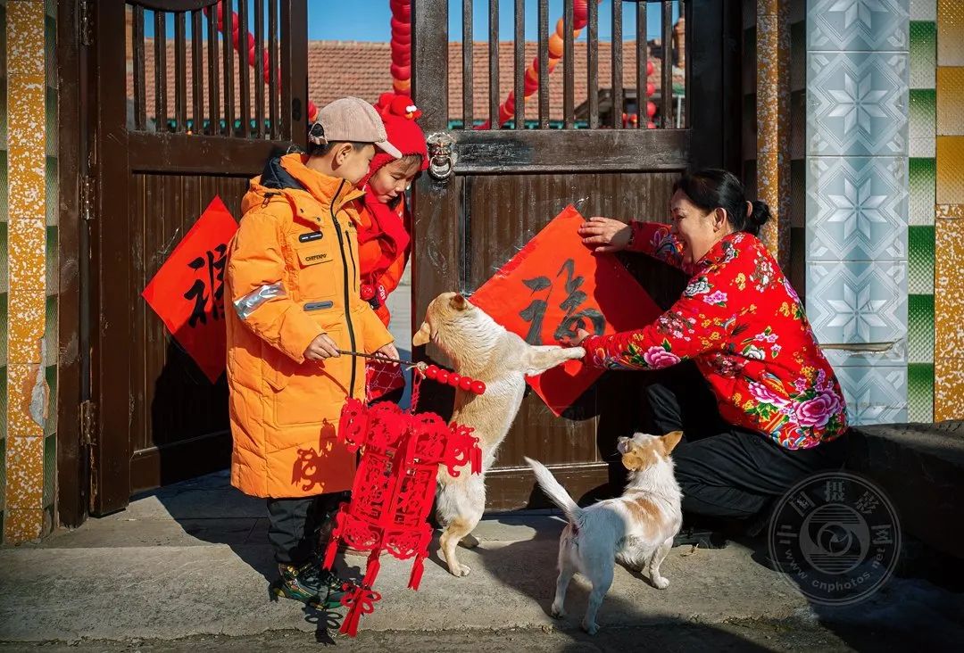 ▲ 《纳福》©曹希君(辽宁铁岭)2024年1月15日,拍摄于铁岭市凡河镇五角湖村,奶奶带领孩子们在大门贴福字迎接新年的到来。