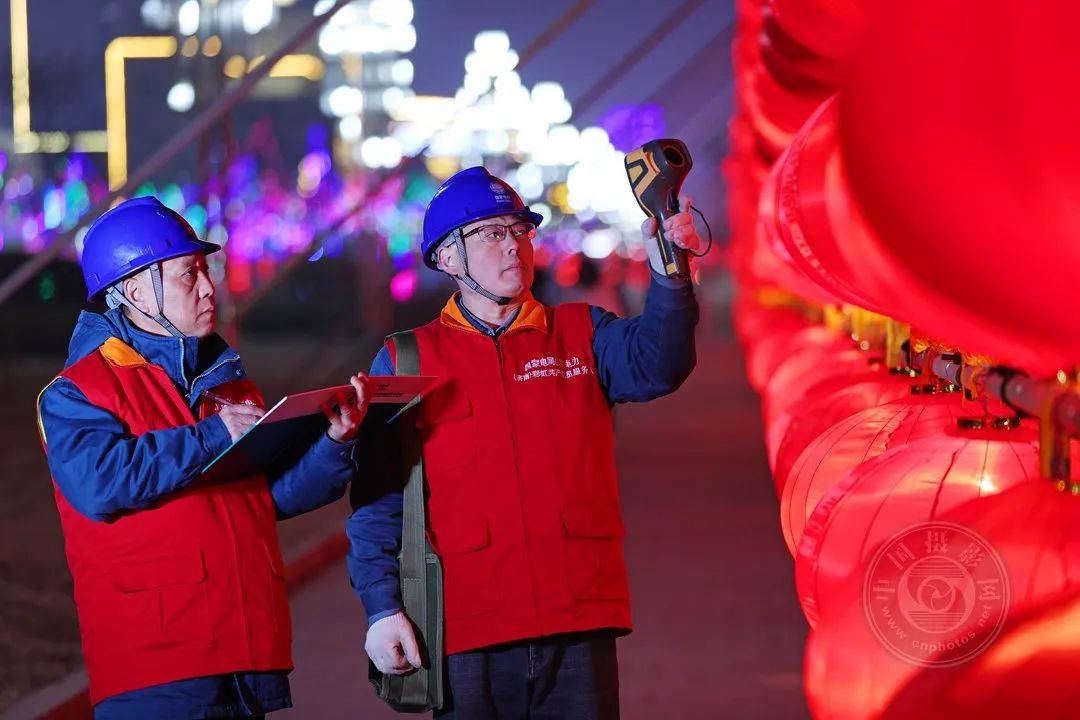 ▲ 《霓裳的守护》©陈彬(山东济南)2024年2月8日,在山东省济南市济阳区灯展现场,电力员工对灯展用电进行检查,守护小城春节的霓裳和年味。