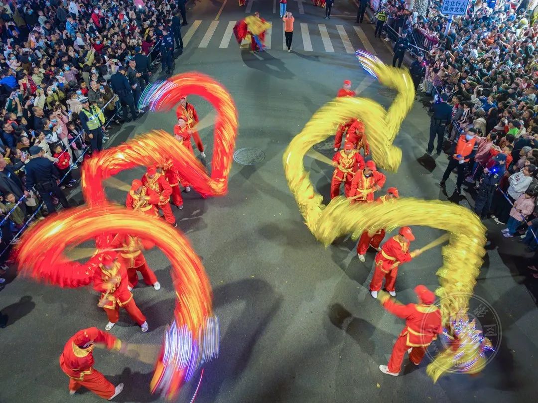 ▲ 《双龙摆尾》©陈浩然(江苏南京)2024年2月13日晚,拍摄于江苏南京。一龙含珠,双龙摆尾,两条“灯龙”交相辉映。