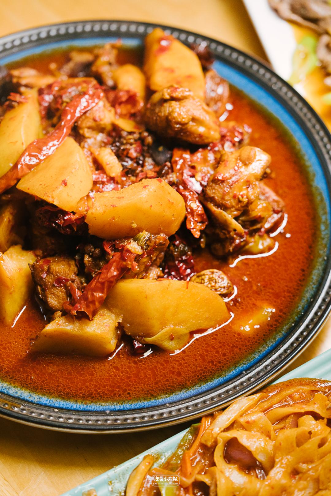 小盘鸡,原来是小份“大盘鸡”。作为典型的家常硬菜,西北人每次回家都必须喊朋友去搓上一顿。一口铁锅现场炒制,再放进高压锅炖煮,高压锅放气儿的时候,香味儿窜满整个屋子!除了鸡,土豆也是主角,吸足了汤汁的土豆,极致绵密,用筷子一夹就断,放嘴里一抿就化。复兴岛饭店
