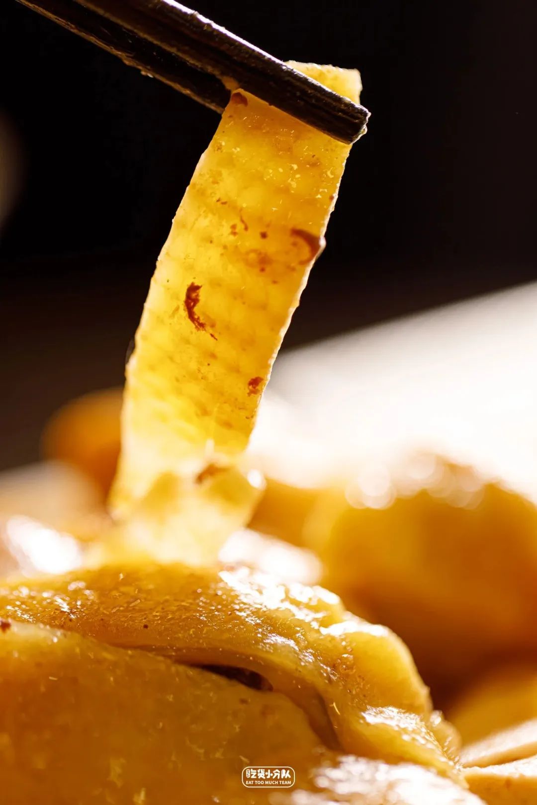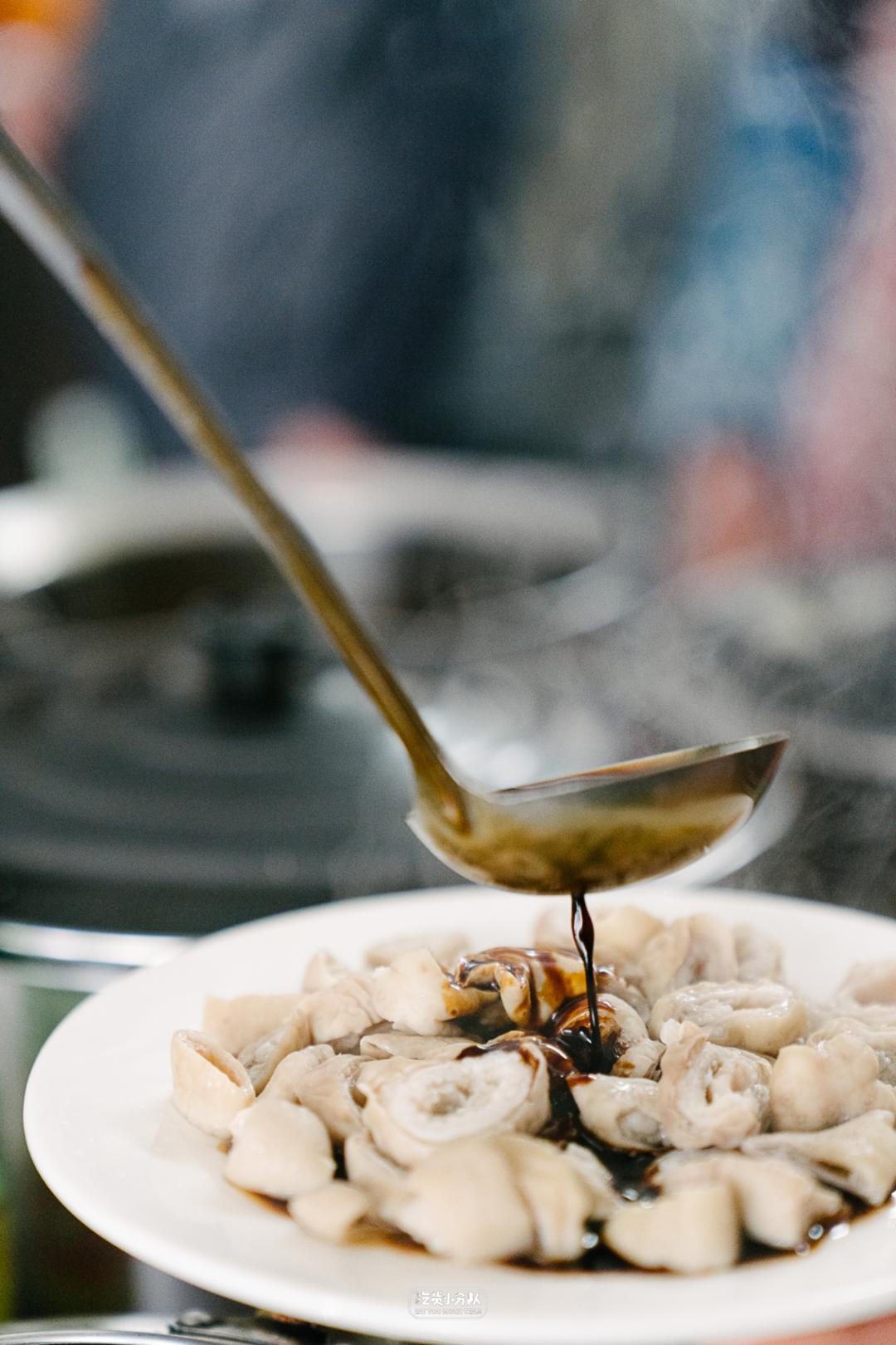 应季菜每个季节都换着花样上新,但再怎么变也撼动不了这三盘“钉子户”。被食客称作“松江三白”,是店里老客必点的心头好。自己烧的农家酱油,香料更香。肚条是“白切三兄弟” 里的顺位大哥,是本地人家常必不可少的1道经典菜。白润厚肚整齐码放在盘中,颜色上浅下深,油亮的深褐色在视觉上格外加分。入口初觉脆弹,后面越嚼越糯,越吃越有味。松南饭店