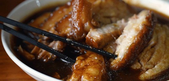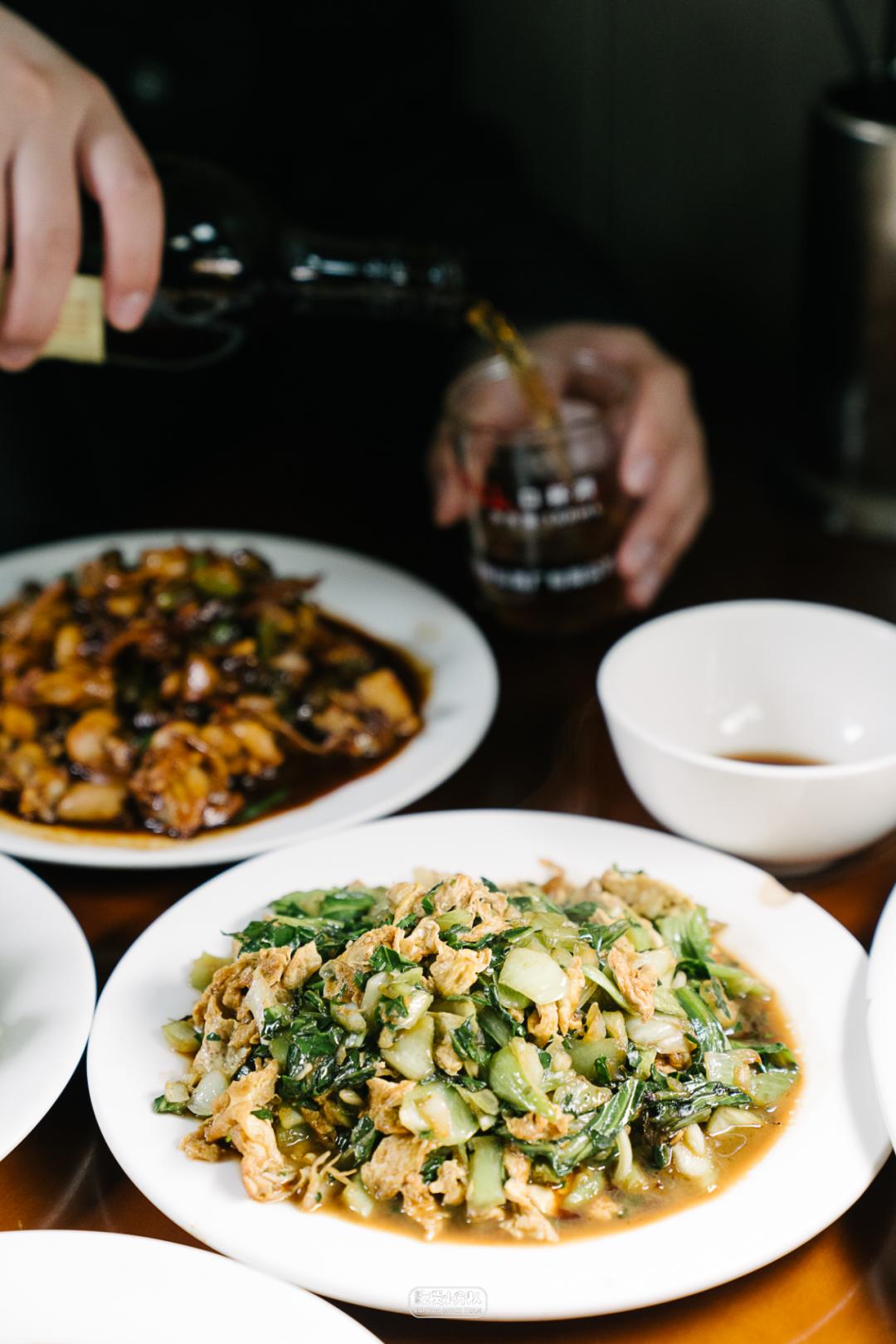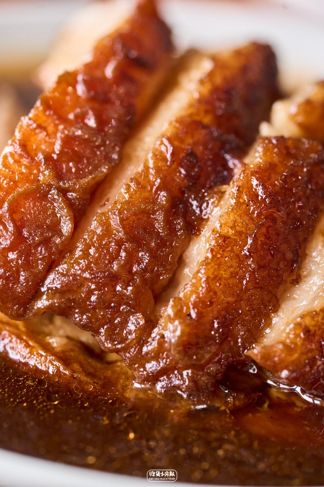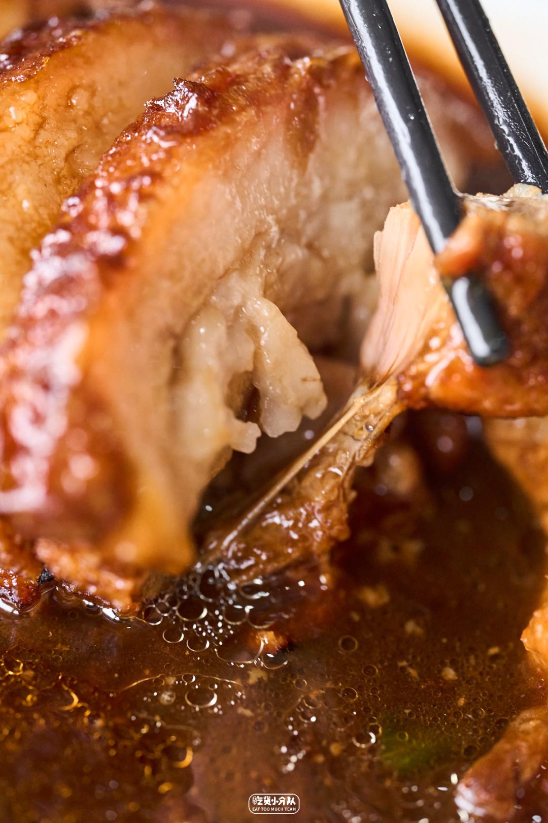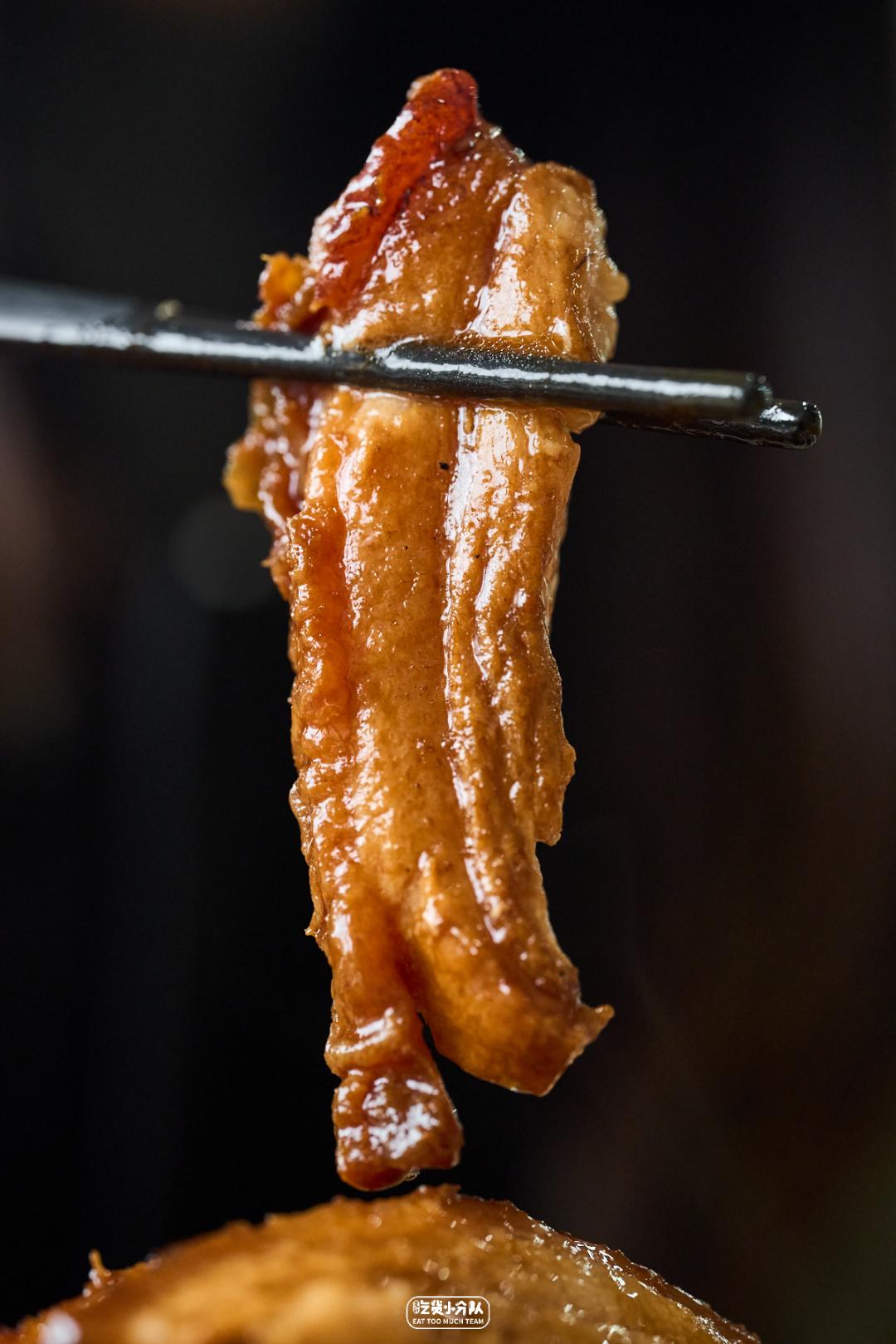 浓油赤酱的红烧方肉,也是一道功夫菜,每天只能烧30块。经过煮熟、炸酥、再红烧3道工序,才能变成上桌后一夹就断,软烂入味儿的最佳状态。很妙的一点在于,以为会肥的部位却没有肥腻感。筋道的表皮连着油润的部分,拌一点米饭入口,只觉得肉香在嘴巴里散开。调味倒是不会太甜,类似北方的把子肉。雄华饮食