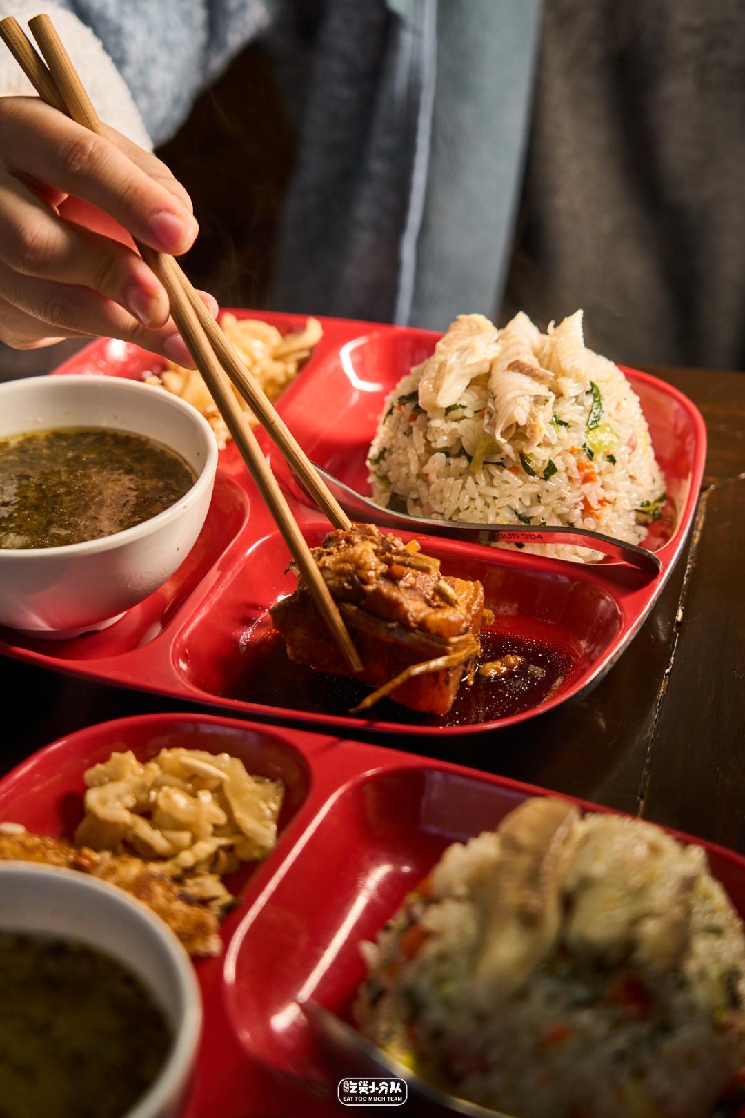 昂刺鱼用的是当天现杀的鲜鱼,专挑5两左右大鱼,新鲜度有保障,肉量还足。挂在盖上靠蒸汽焖熟3刻钟,鱼肉变得烂糊,自然掉落到米饭上,一身香气精华被米饭尽数吸收。刚出锅的菜饭充满鱼的鲜香,鱼肉鲜香嫩滑,一部分被拌进饭里,一部分被放在顶上;焦饭锅巴是叔叔阿姨的最爱,吃进嘴里焦香四溢,越嚼越有味,久久舍不得咽下。昂刺鱼菜饭