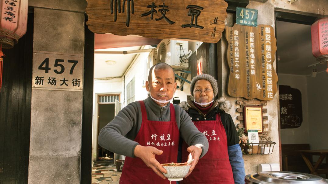 这碗被编入非遗的鸡汁豆腐花,创立于清光绪三十一年,手艺一共传承了100多年,全上海仅此一家。很多本地美食栏目,都慕名去过他们家。从摊头做起到有些朴实的小店,这店做到了上海豆花第1名。美食传了1代又1代,而张雄正张师傅是第三代传人。坚持手工石磨磨制,凌晨2点半起每天磨豆4小时,散养3年老母鸡熬鸡汤...这么多年,也没涨过1块钱。