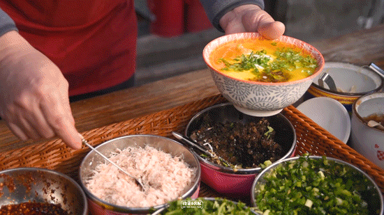 10块钱1碗,却是实实在在的好吃。从早上,张师傅就把1大桶幼滑软嫩、刚制出的豆花端到摊位上。一片片雪白的豆花,沉在汤底,带着清爽的豆香气,滑溜溜的,在勺尖打颤。现熬的土鸡汤,用的都是本地杉林里的散养鸡,每天用30只9个月土鸡熬汤之后,最后用整只3年老母鸡再继续熬煮。豆花舀出来后,浇一勺旁边现熬的土鸡汤,再把土鸡鸡丝、新场特产的桃胶、小虾米、自制辣椒油等,一样样佐料加去。竹枝豆张记鸡汤豆腐花