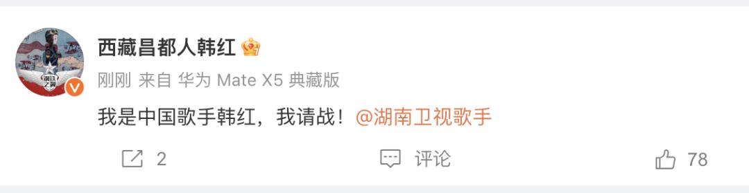 昨天(5月12日)韩红发文“报名”参加歌手
