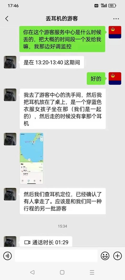 民警再次联系失主询问详细情况,得知该耳机可以定位。失主告诉民警:“通过定位来看,拿走耳机的人应该是和自己同一批来泸沽湖旅游的人”。之后民警立即调取事发地点及周边监控视频,经过2个多小时的努力,民警立即对现场人员进行排查。最后,在离这批游客离开前几分钟找到了拿走耳机的人员。在民警的耐心劝说下,其将耳机归还给了失主。