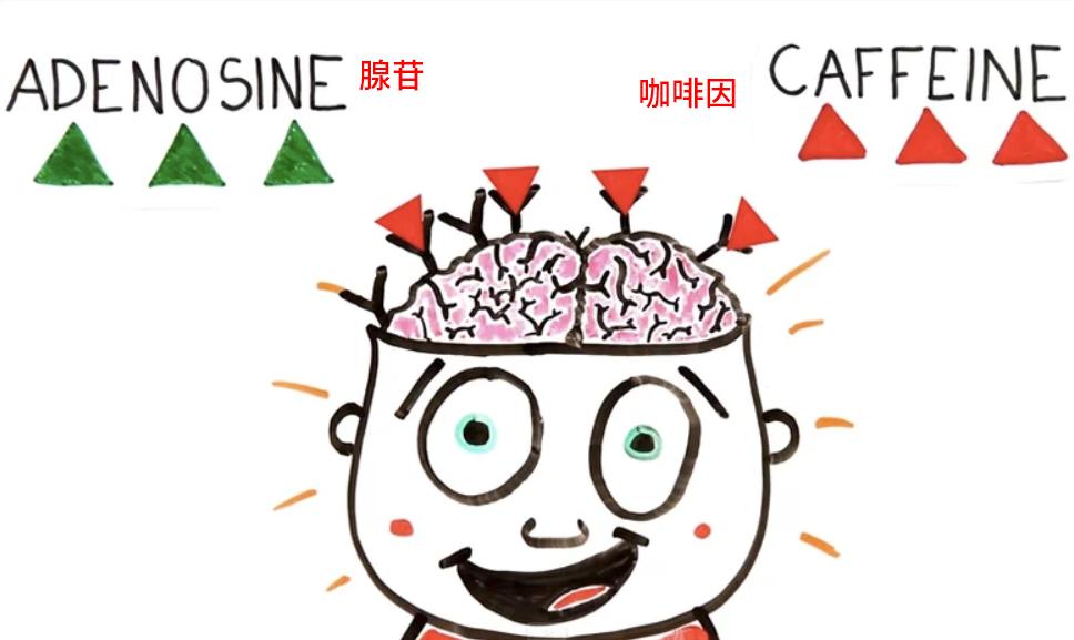 从大脑的机制出发,首先,我们大脑中负责产生困意的是腺苷和腺苷受体。其次,咖啡因是中枢神经系统的兴奋剂,主要依靠它达到提神效果。而咖啡因的分子结构类似于腺苷,它的出现阻挡了负责睡前减缓中枢神经系统速度的腺苷分子,抢先结合到腺苷受体,自然就无法正常地产生困意。