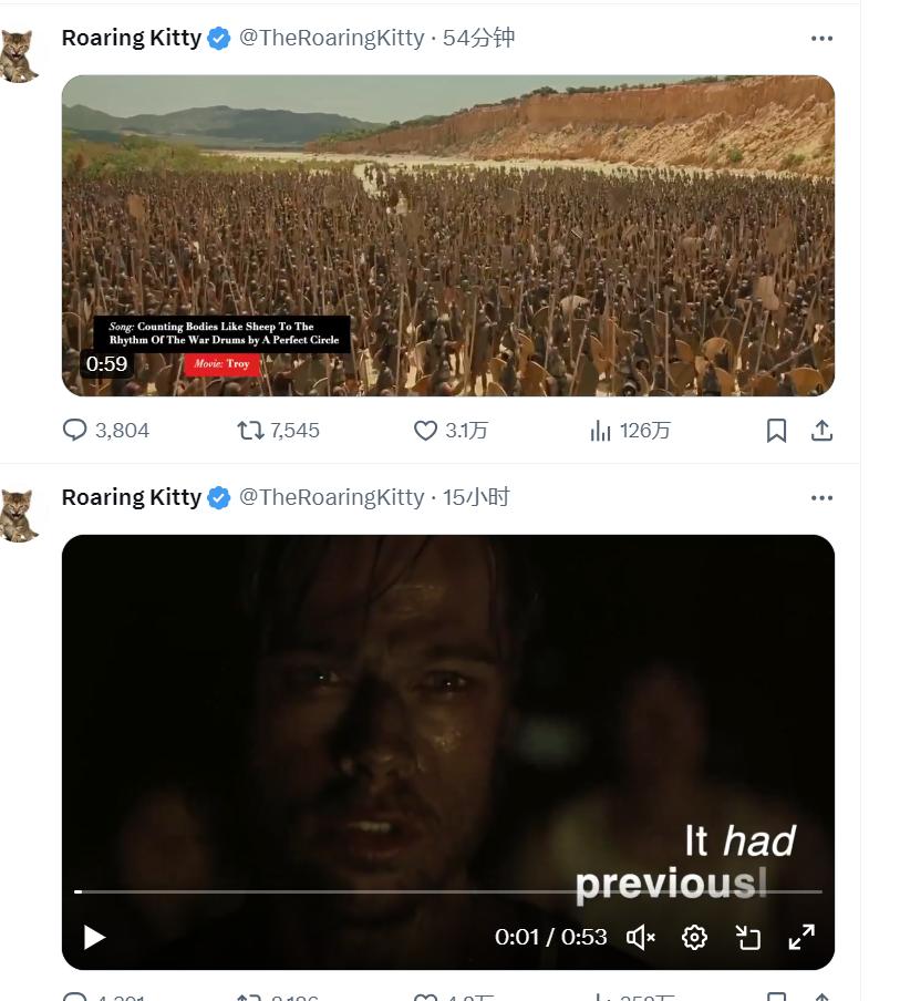 在Keith Gill回归社交媒体后,他在短短10小时内连续发布了12条新的推文,总浏览量已超过3000万次并引来超过2.5万条评论。