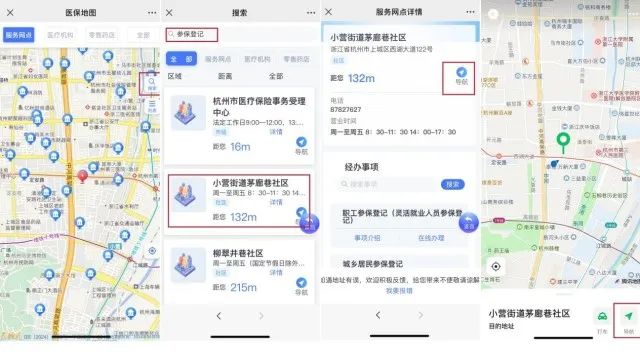 市民只要通过“医保地图”搜索需要办理的业务名称,就可以在地图中了解经办业务的服务网点的相关信息,并且可以一键跳转至导航直接前往。“先查经办事项,后找服务网点,‘医保地图’是杭州医保对医保公共服务的一次新探索。”市医疗保障局相关负责人说,别看这是一张“小地图”,但它纳入了全市的医保经办机构、服务网点、定点医药机构,拓宽了服务渠道,丰富了服务形式。