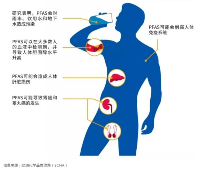 PFAS进入环境后会富集在生物体中,对人类和生态系统产生毒性影响。与PFAS接触可能导致多种健康问题,包括甲状腺疾病、肝脏损伤、免疫力下降和癌症。