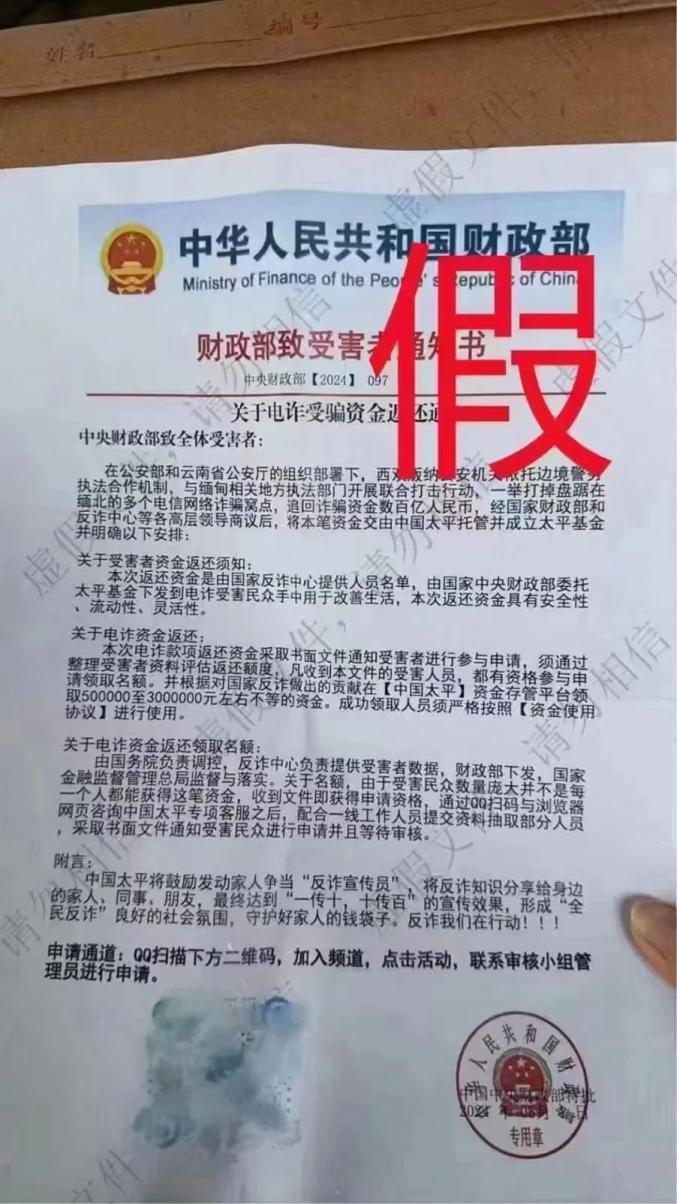 套路解析资金返还程序:关于受骗群众返还被骗资金,公安机关只会通过官方渠道发布通告,不会通过快递邮寄给个人,收到不明快递时不要随意扫码或者添加陌生人为好友,看到“免费领取”“扫码加好友”等信息时切勿相信,更不要随意登陆陌生的网站。