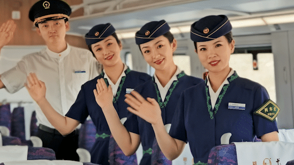 身穿新制服的乘务人员面带微笑