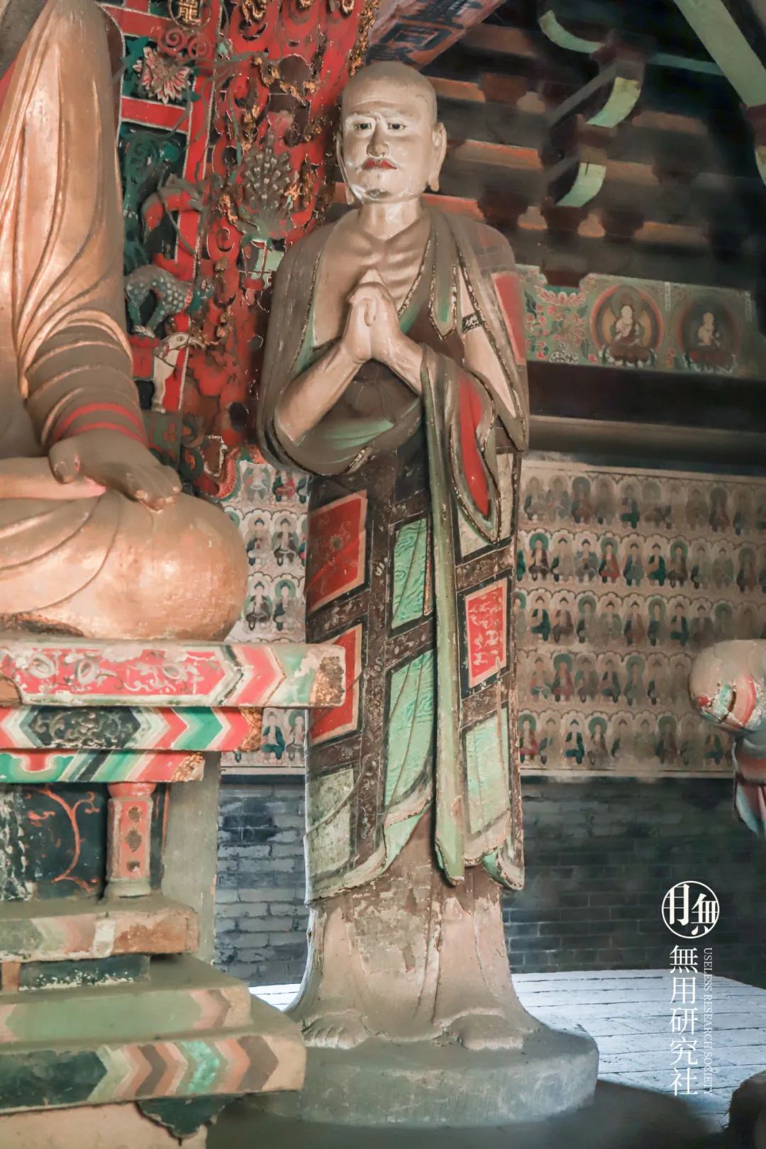 此壁画与大殿内其余壁画题材形象均不相同,应是后世补绘的人物,这也侧面反应出万佛殿的硬砖墙为后世砌筑,与大殿旧貌应有较大不同。