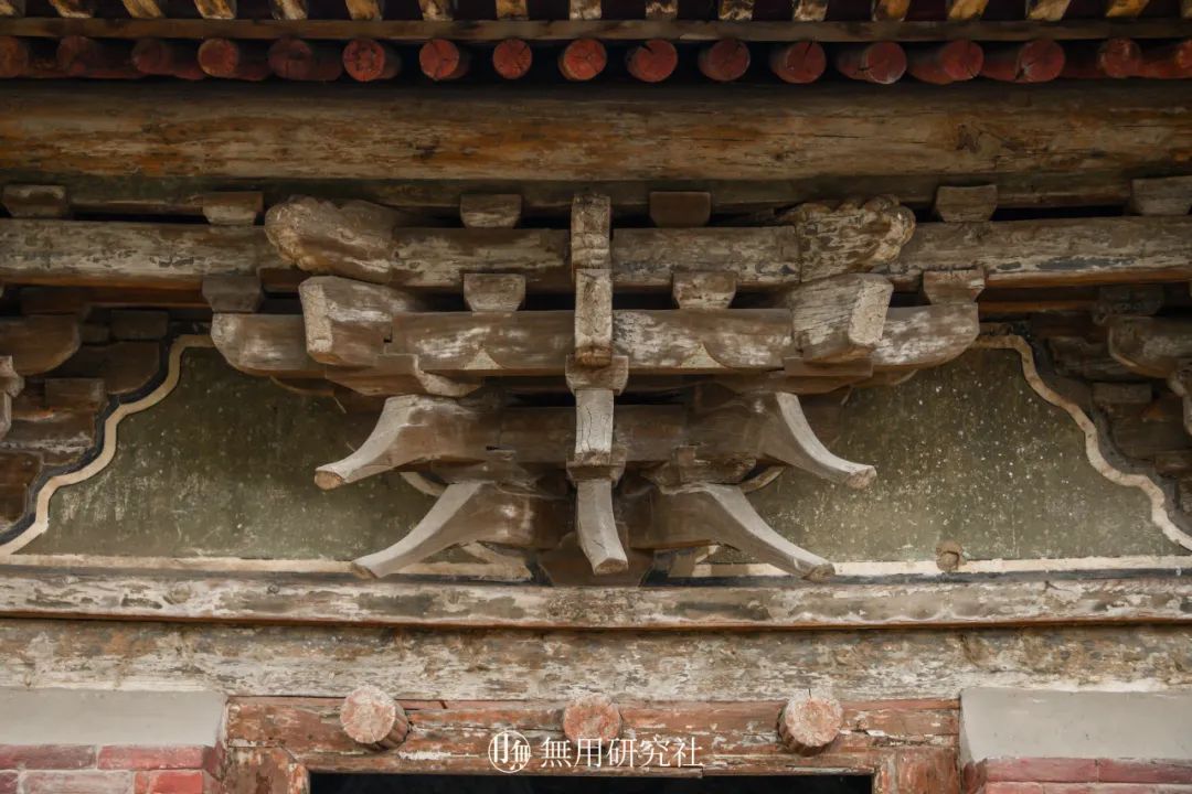 天王殿共用外檐铺作14朵,柱头铺作8朵,补间铺作施一朵,前后檐当心间补间铺作采用斜栱。