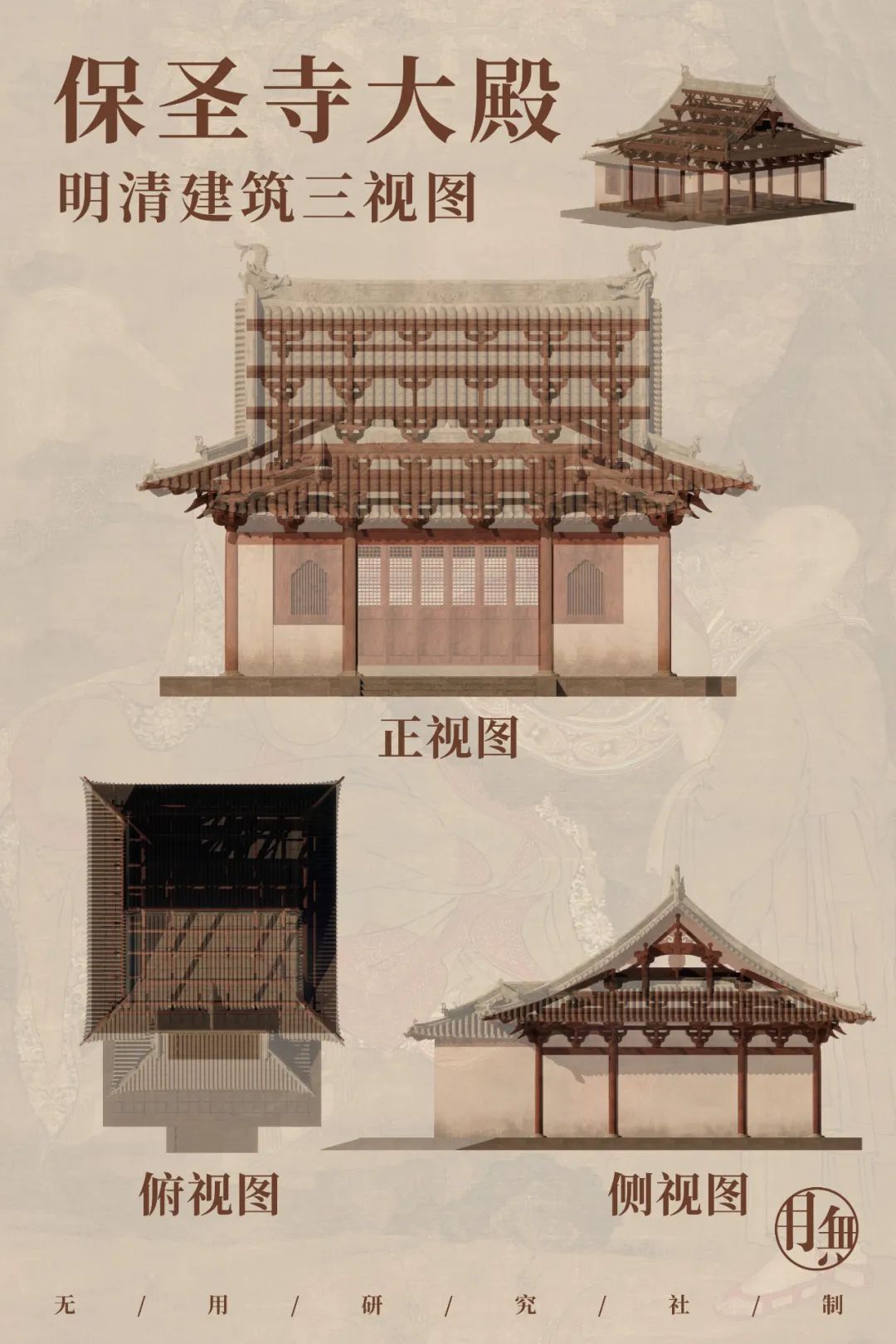 比例鲜明的铺作与大屋顶这样尺度的屋顶与用材,即使盖于明清五间甚至七间的建筑上依然不会失衡,可能还有富余。