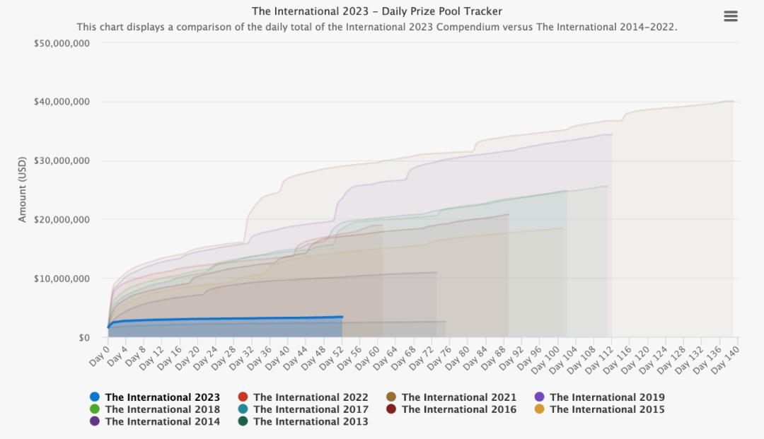 因此,他们选择了停止从2013年开始的勇士令状,TI奖金的众筹机制并没有停止,但由于勇士令状中令人欣喜的奖励被分配到了其他时间中推出,TI的奖金也出现了剧烈的下滑,奖金仅有338万美元。