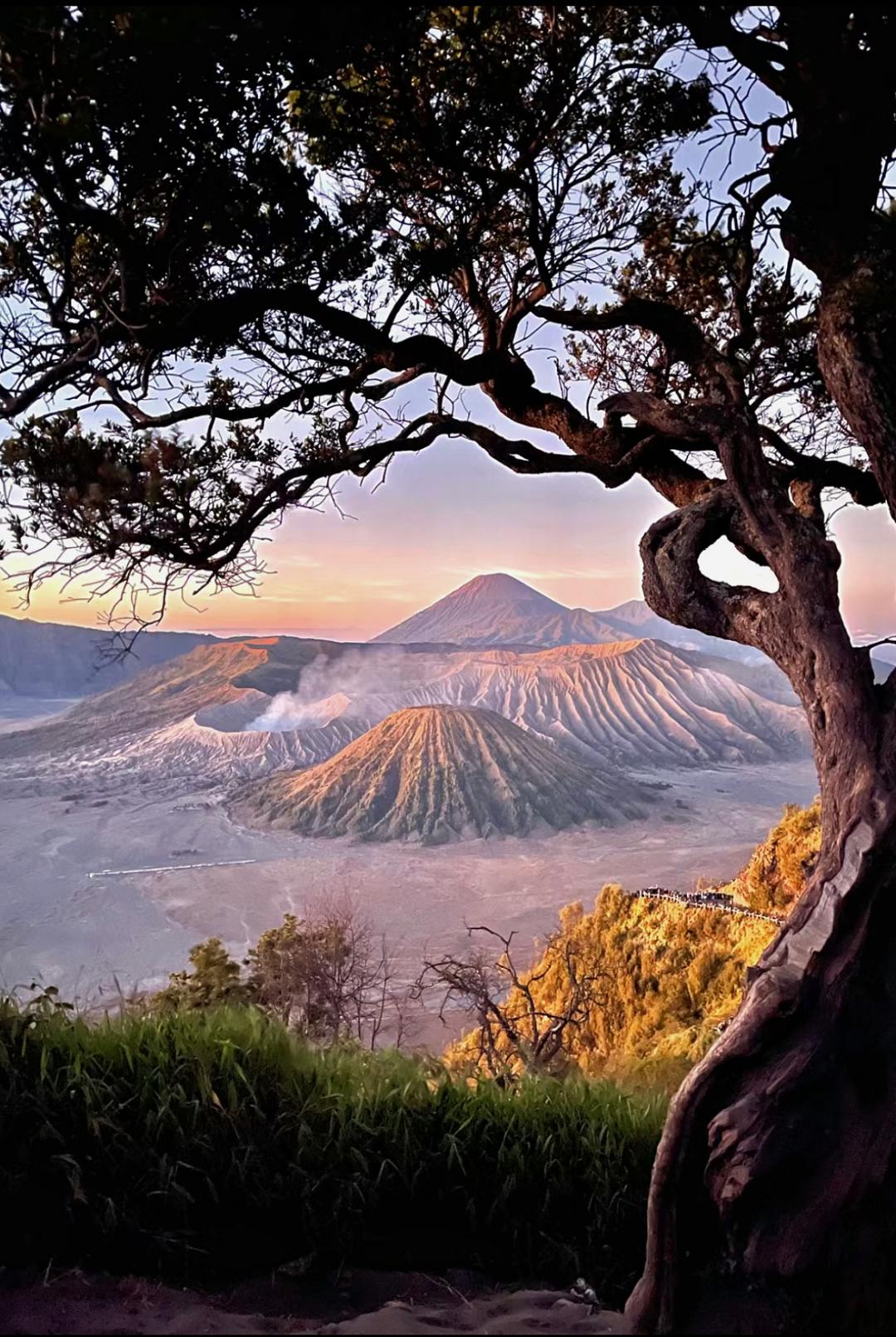 ©️紫町兰每天太阳升起时,布罗莫火山就会向大自然发出低沉的轰鸣,火山口弥漫白烟,伴随着阵阵轰鸣,难怪美国《国家地理》会将布罗莫评为是“地球上最像月球表面的活火山”。