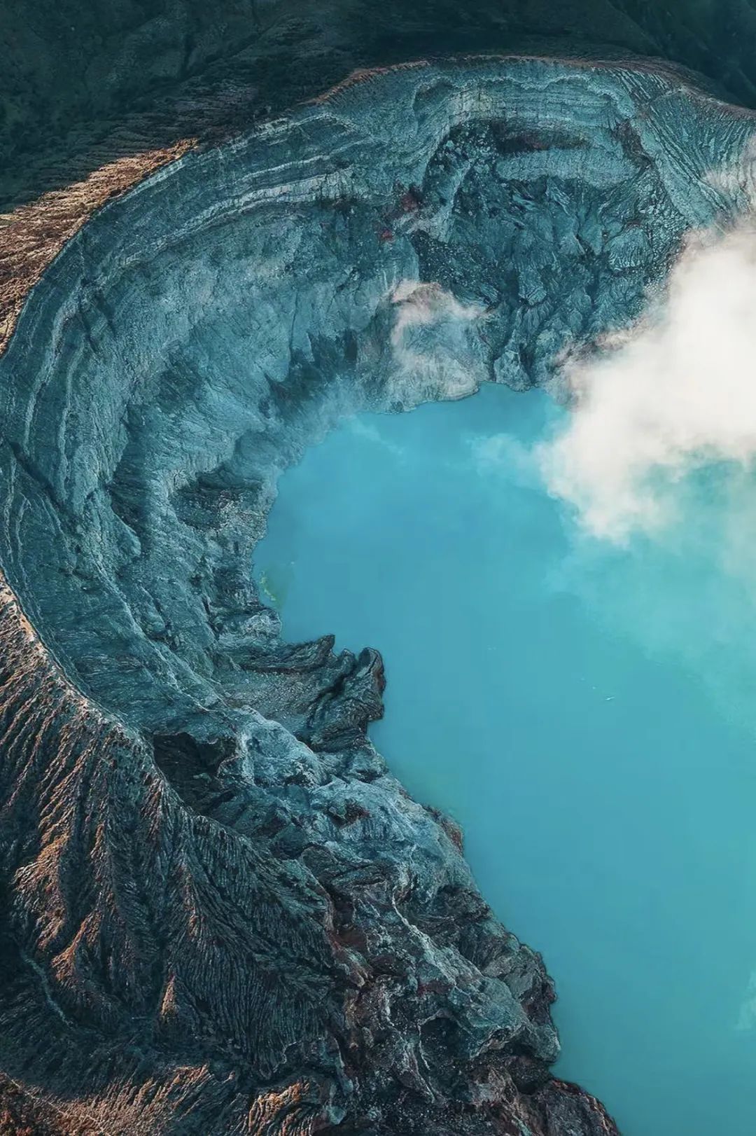 宜珍火山是亚洲仅有的,流淌着地球蓝色血液的强酸性火山湖,被称为是世界的“地狱入口”。