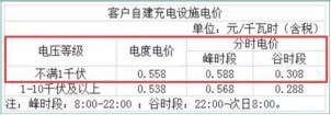 居民自建充电设施电价不满1千伏的电价为0.558元/千瓦时。