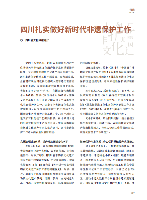 【论苑】四川扎实做好新时代非遗保护工作