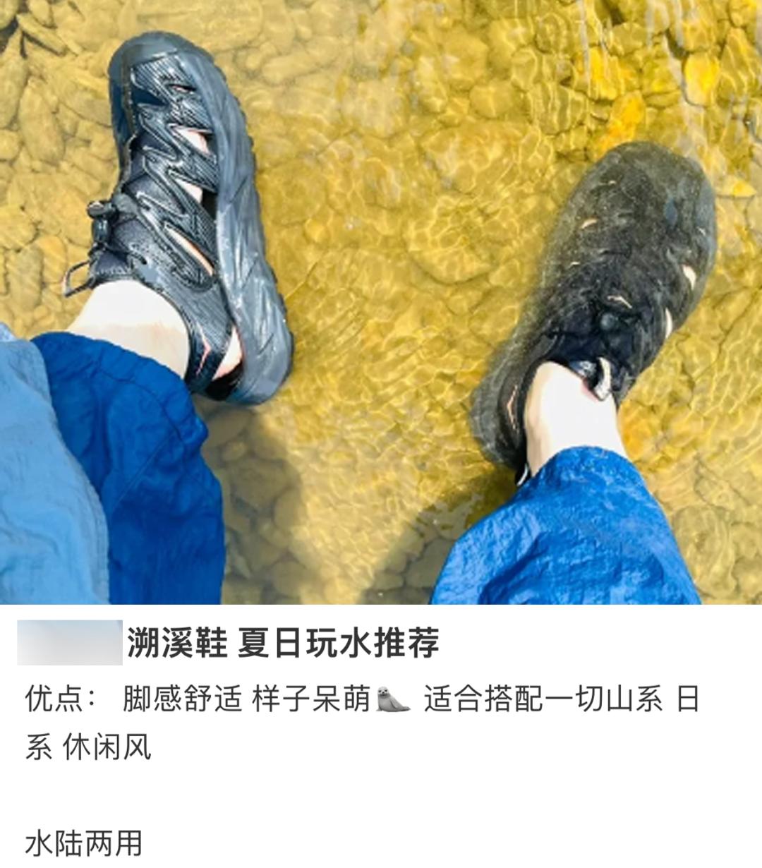图源@屁屁彤在户外品牌卷生卷死的当下,年轻人陡然发现,只有溯溪鞋能超脱鄙视链之外,从而拿捏一种水陆两栖的松弛感。“别的鞋再高贵,也只能每天用来踩柏油马路,溯溪鞋却能让你在野外随便造,还能保持最起码的体面。”